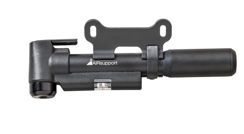 Be prepared for flats on your commute or errands around town. The Air Support hand pump is designed specifically for the tyres on your commuter, cruiser or town bike. The auto-select head uses a fold-out lever to lock securely to Schrader or Presta valves for quick and easy inflation up to 8 psi.